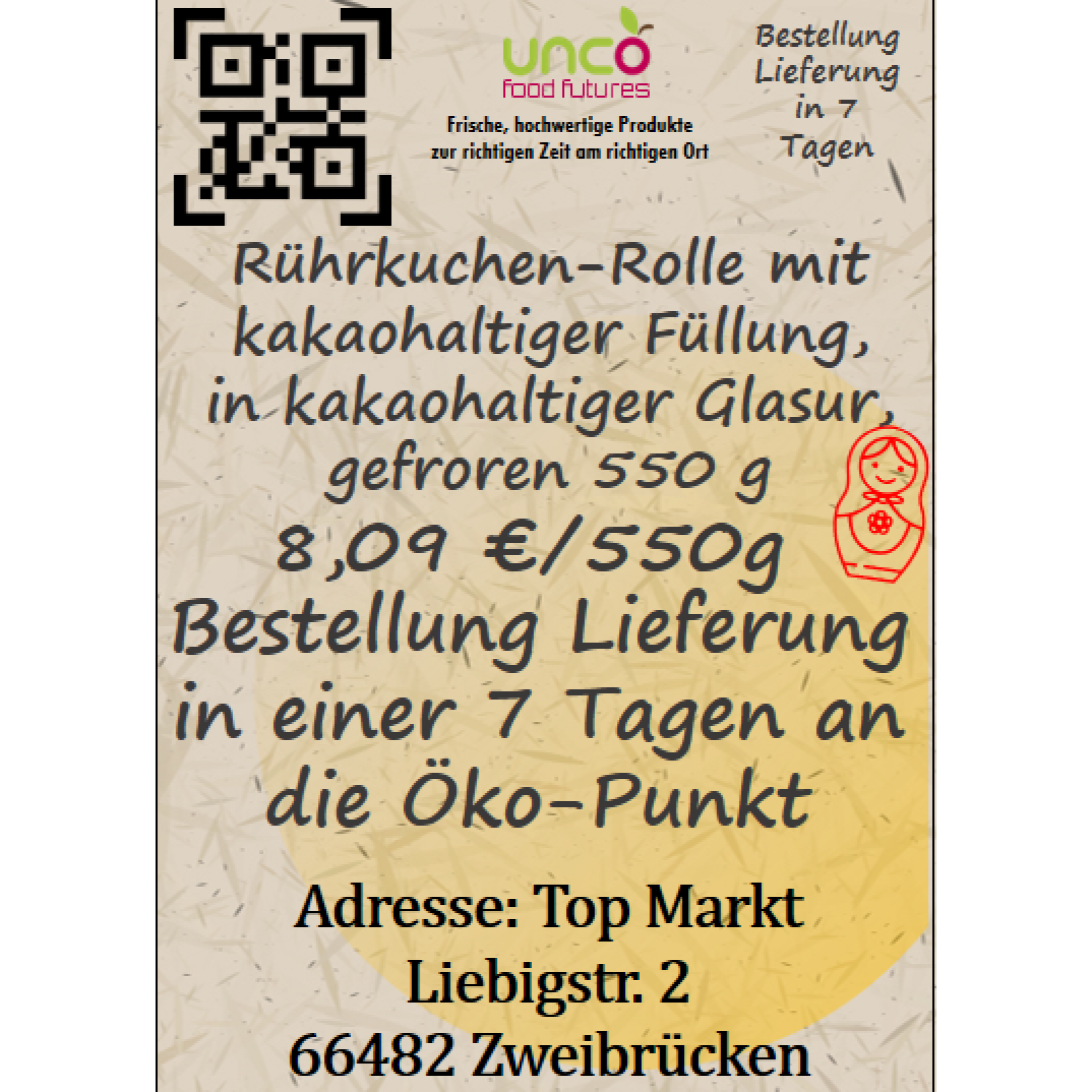 Rührkuchen-Rolle mit kakaohaltiger Füllung, in kakaohaltiger Glasur, gefroren 550 g