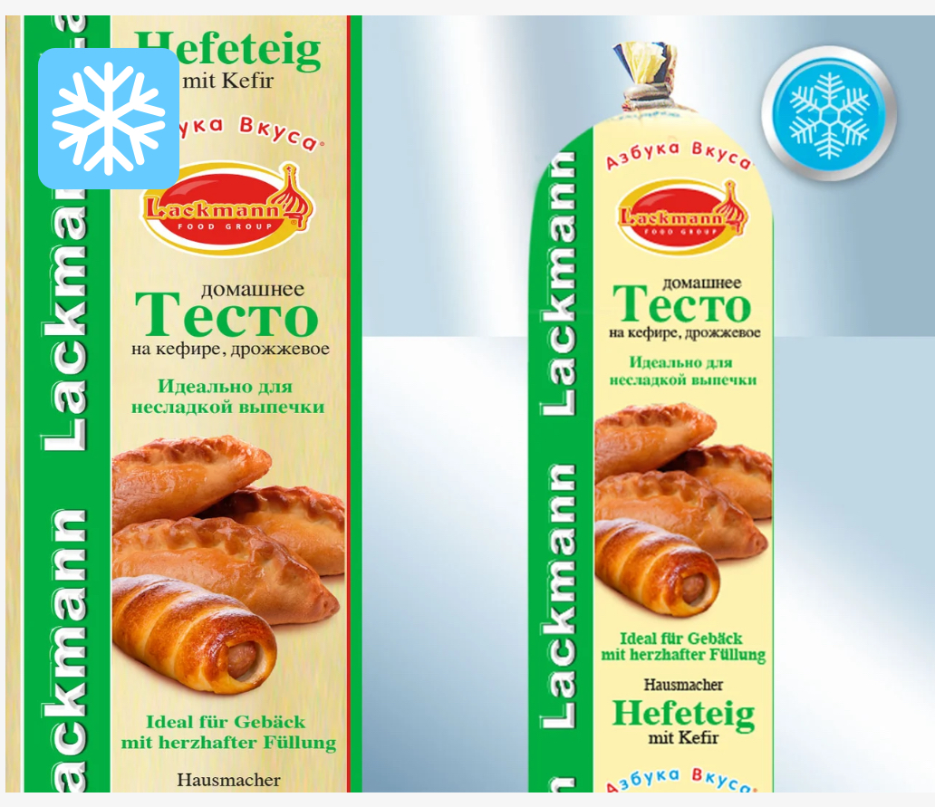 Hefeteig mit Kefir, zum backen, ideal für Gebäck mit herzhafter Füllung, roh, nicht süß, gefroren 1 kg